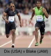 Dix v BlakeThis time four years ago I would have bet that 19.6x would win in Beijing. As we start the road to London there are FOUR men with PR’s faster than that headed by WR holder and defending Olympic champion Usain Bolt (JAM, 19.19). Hot on his heels is Yohan Blake (JAM, 19.26) who raised eyebrows in Brussels last year. Walter Dix (USA, 19.53) lowered his best last year and was runner up to Bolt at Worlds. And Tyson Gay (USA, 19.58) has also run under 19.60 in spite of limited appearances over the last four years and only as season openers – he has not run a summer deuce since 2007.